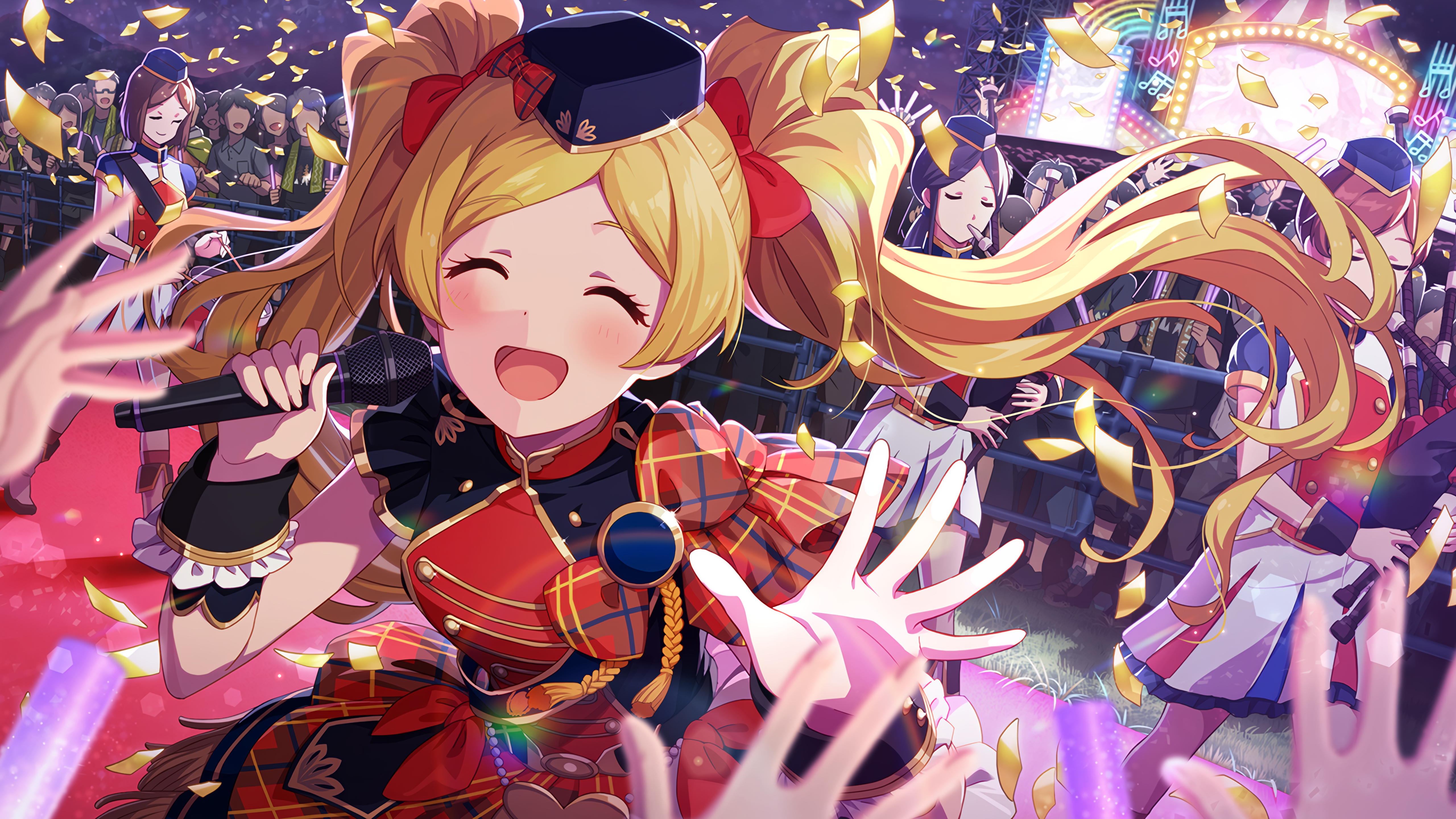 フレーバーテキスト Wow! うれしいです! ごヒイキ様方の笑顔が、こんなに近くに感じられて……♪さあ、どうぞご一緒に! 他のどの出し物にも負けないくらい、もっともっと、盛り上がって参りましょう!