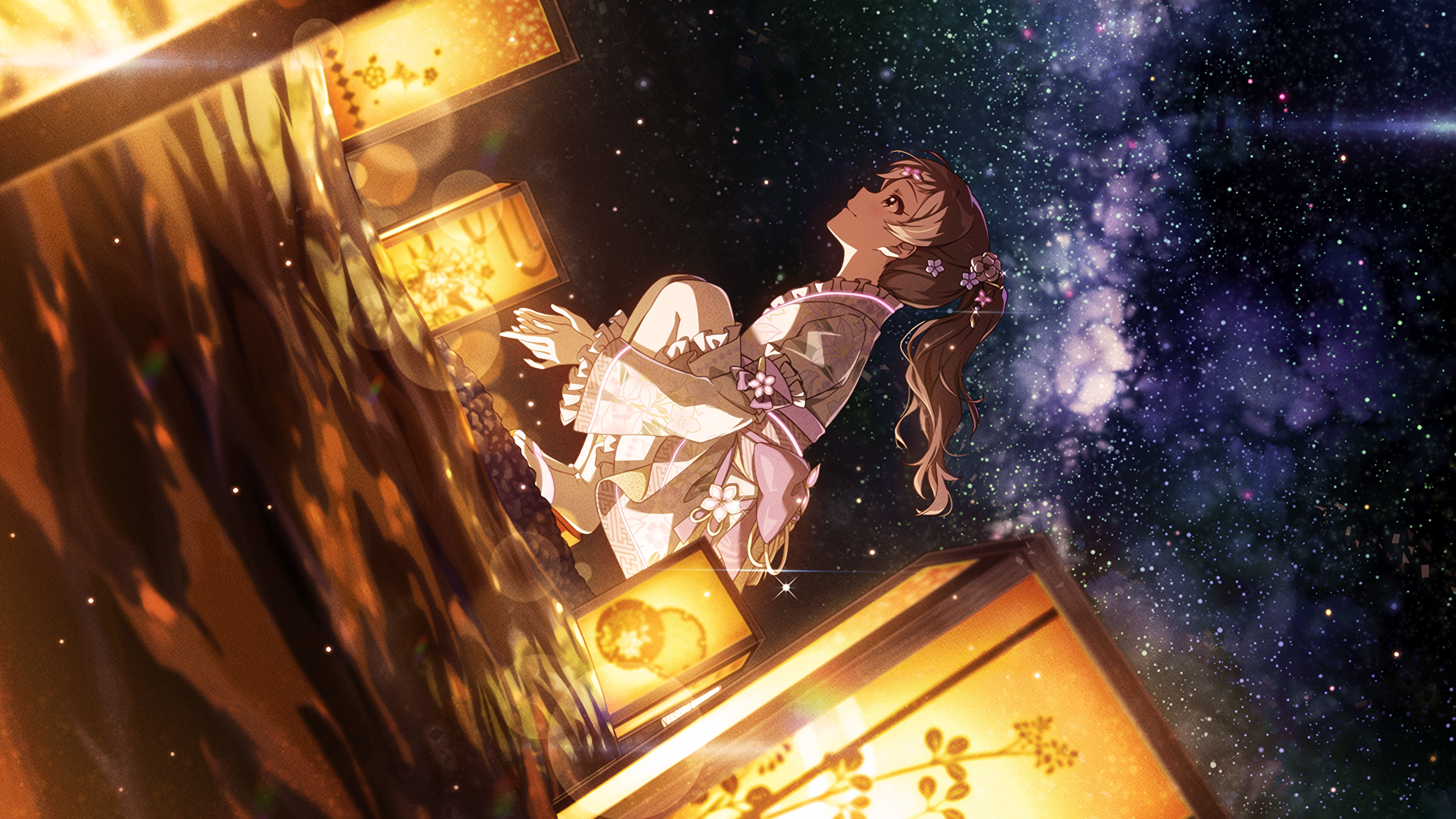 フレーバーテキスト 星空も、川面にも、たくさんの光が……。まるで、夜空に浮かんでいるみたい。この光ひとつひとつに、いろんな願いが込められているんですね。私も……この小さな光に、願いを込めて。