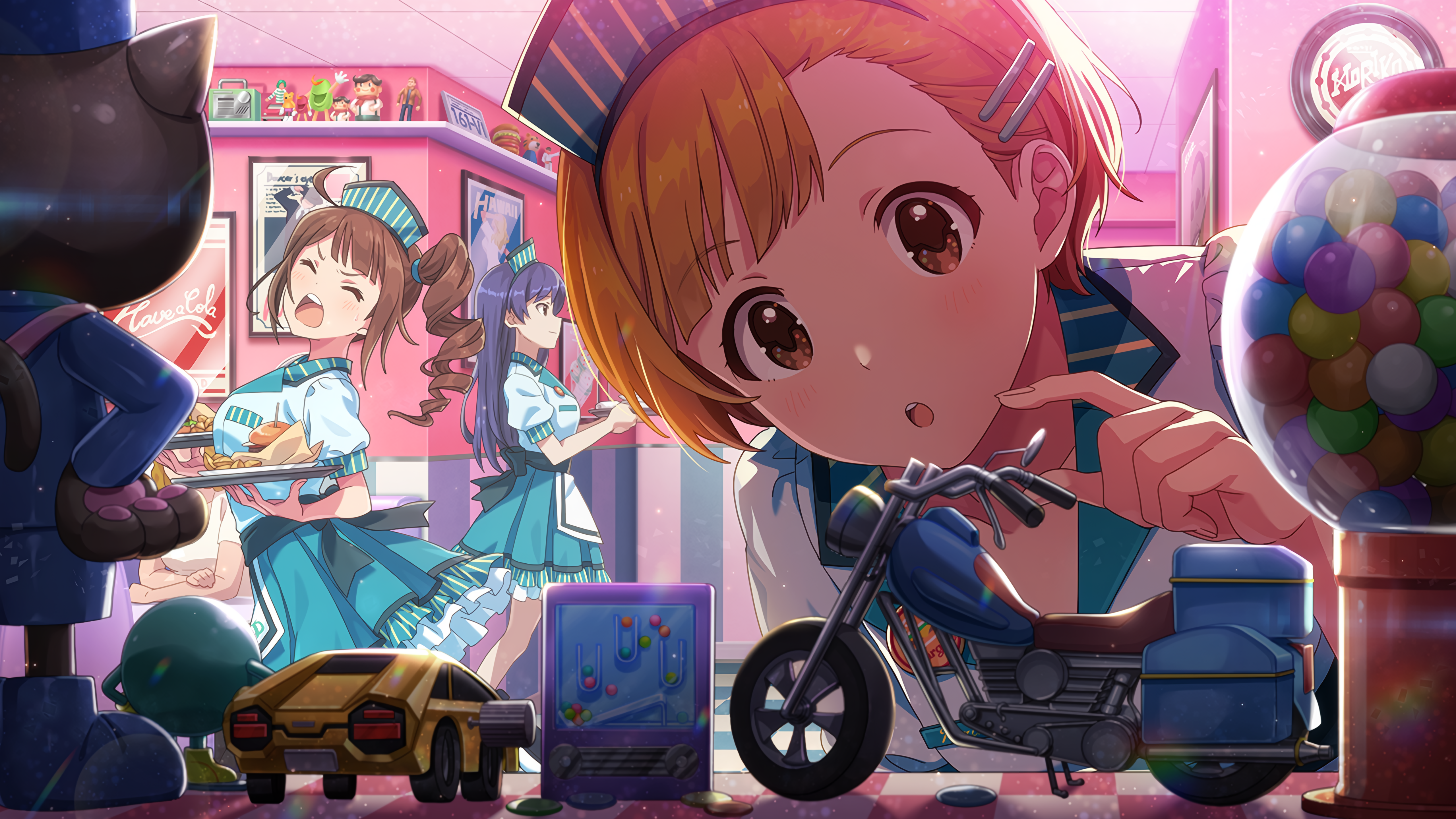 おもちゃの中に紛れ込んだウェイトレスさん。気になるおもちゃに一目惚れして動かなくなっちゃった!買ってくれたら動く…かも?
