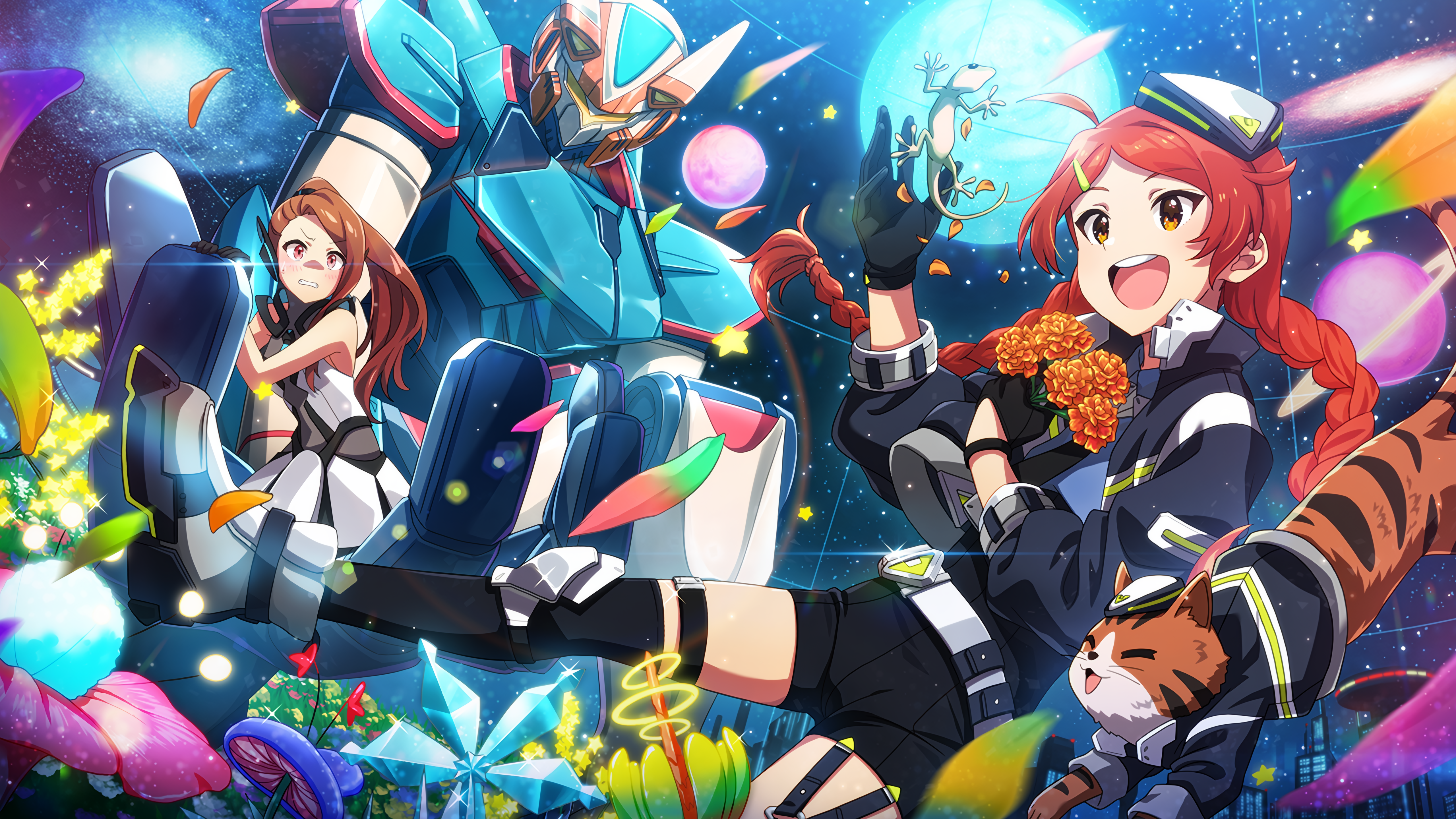 フレーバーテキスト みてみて、これ、地球の花だぞ~!いおりに見せたくて、持って来たんだ。……あっ、ヤモリがくっついてた!くふふ、かわいいね♪ほら、いおりも触ってみて!