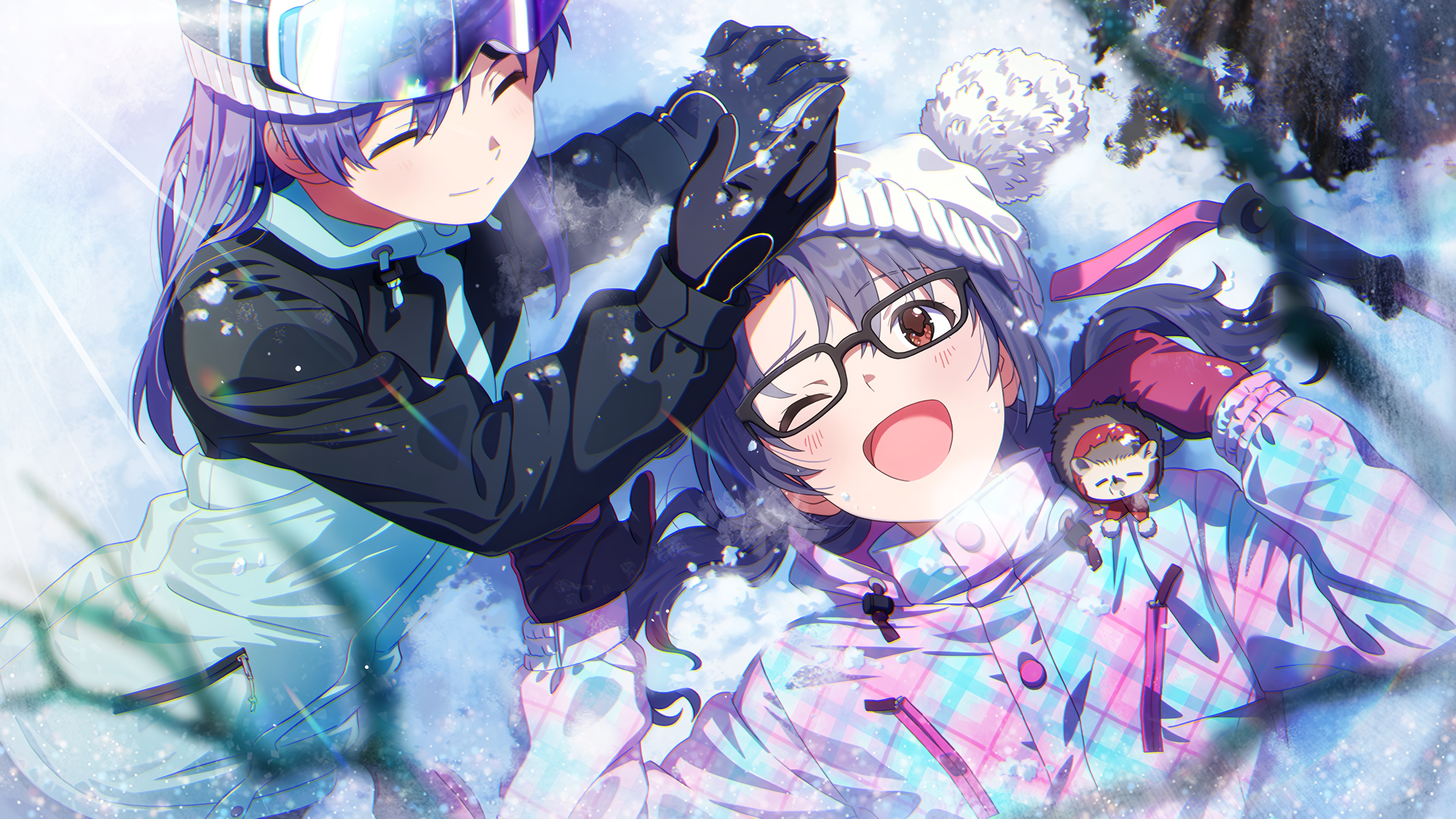 フレーバーテキスト うーっ、ご、ごめんね千早ちゃん、巻き込んじゃって……平気? ケガはない?私は大丈夫! 全身雪まみれだけど……これが本当の、雪化粧ってやつかも?なんちゃって……あはは♪