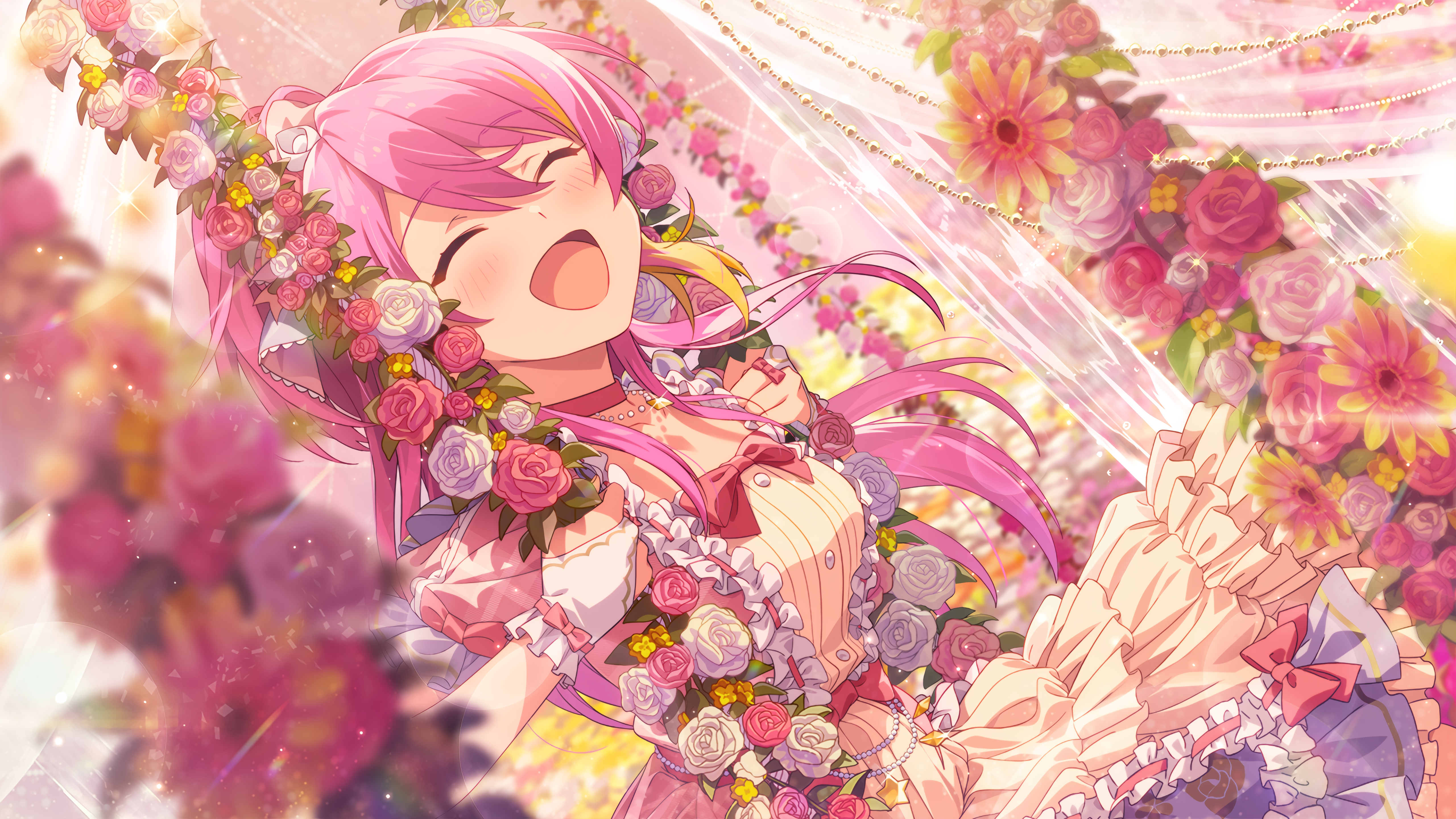 フレーバーテキスト うわぁ……すっごく綺麗!なんかさ、アタシにこういうのって、らしくないかな~なんて思ってたんだけど。衣装も、着てみたら可愛いし。……なんか、うれしいかも。だからその……ありがと。