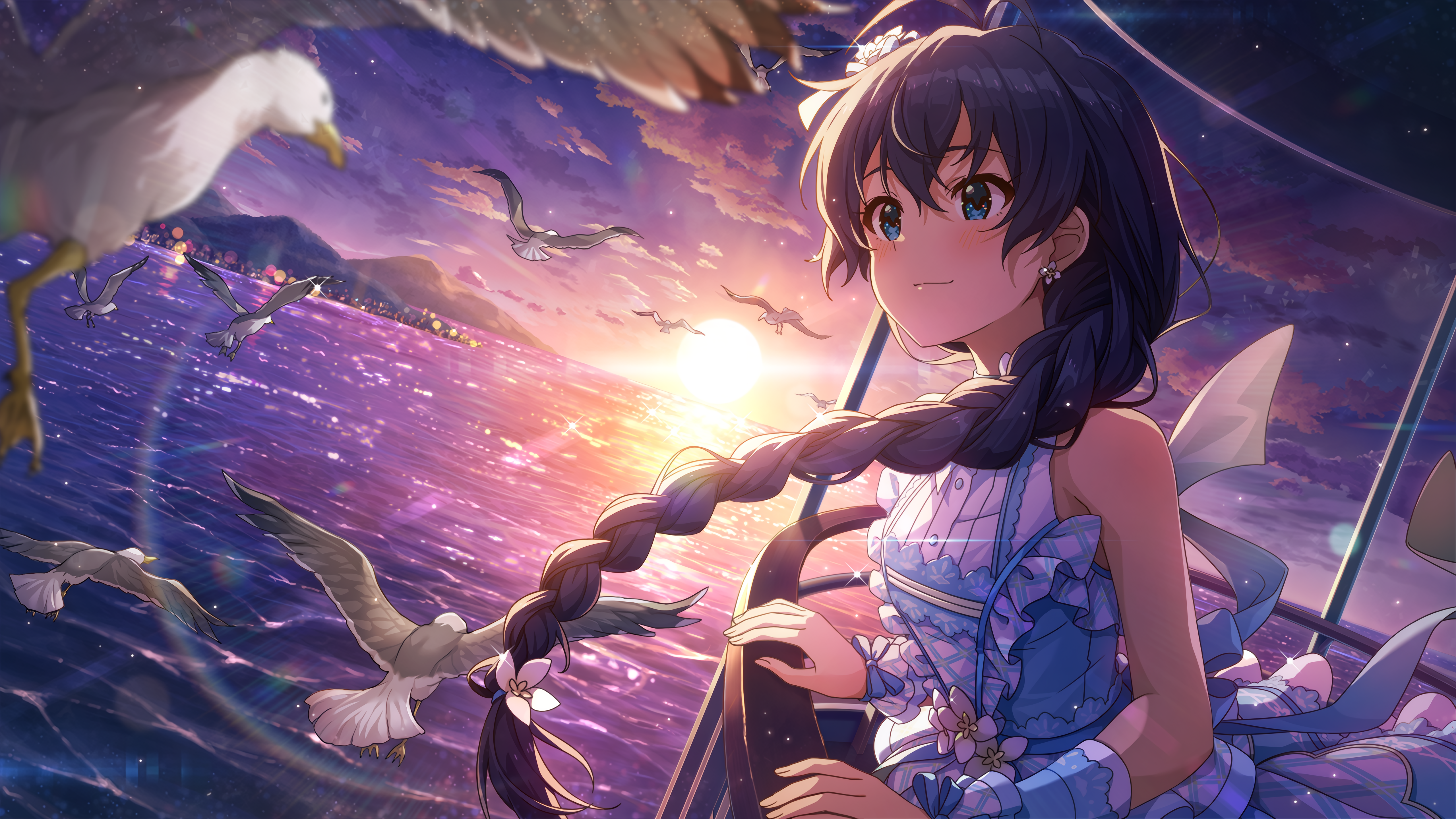 故郷に吹く海風に包まれたような清楚な衣装。サヨナラは言わないぞ。トップアイドルになって胸を張れるようになったら、また…。