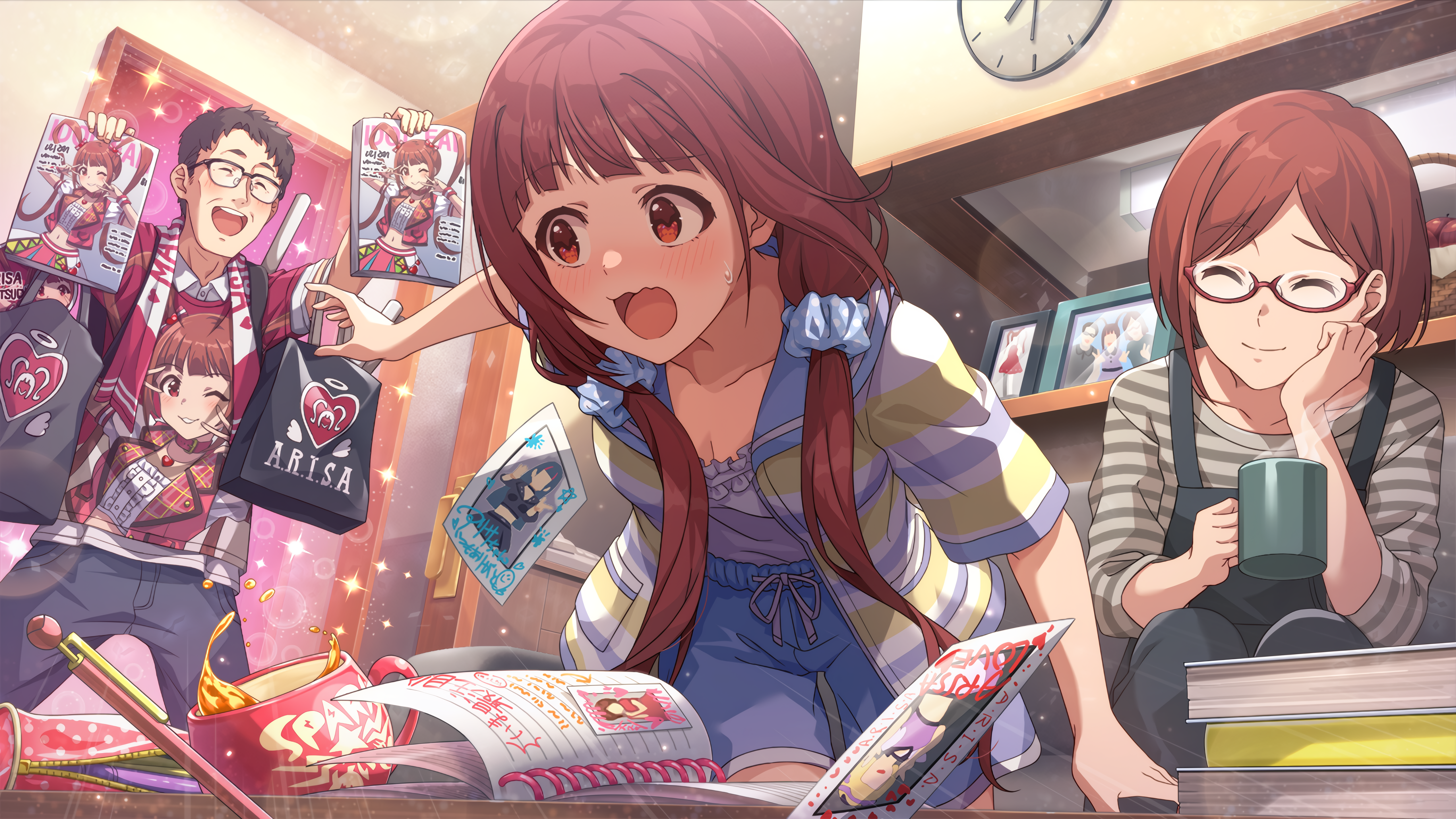 フレーバーテキスト ハッ!? そ、それは……ありさが表紙の雑誌? グッズもシャツも……ま、まさかパパ、布教するつもり!?や、やめて! それドルオタじゃないから! ただの親バカだから!