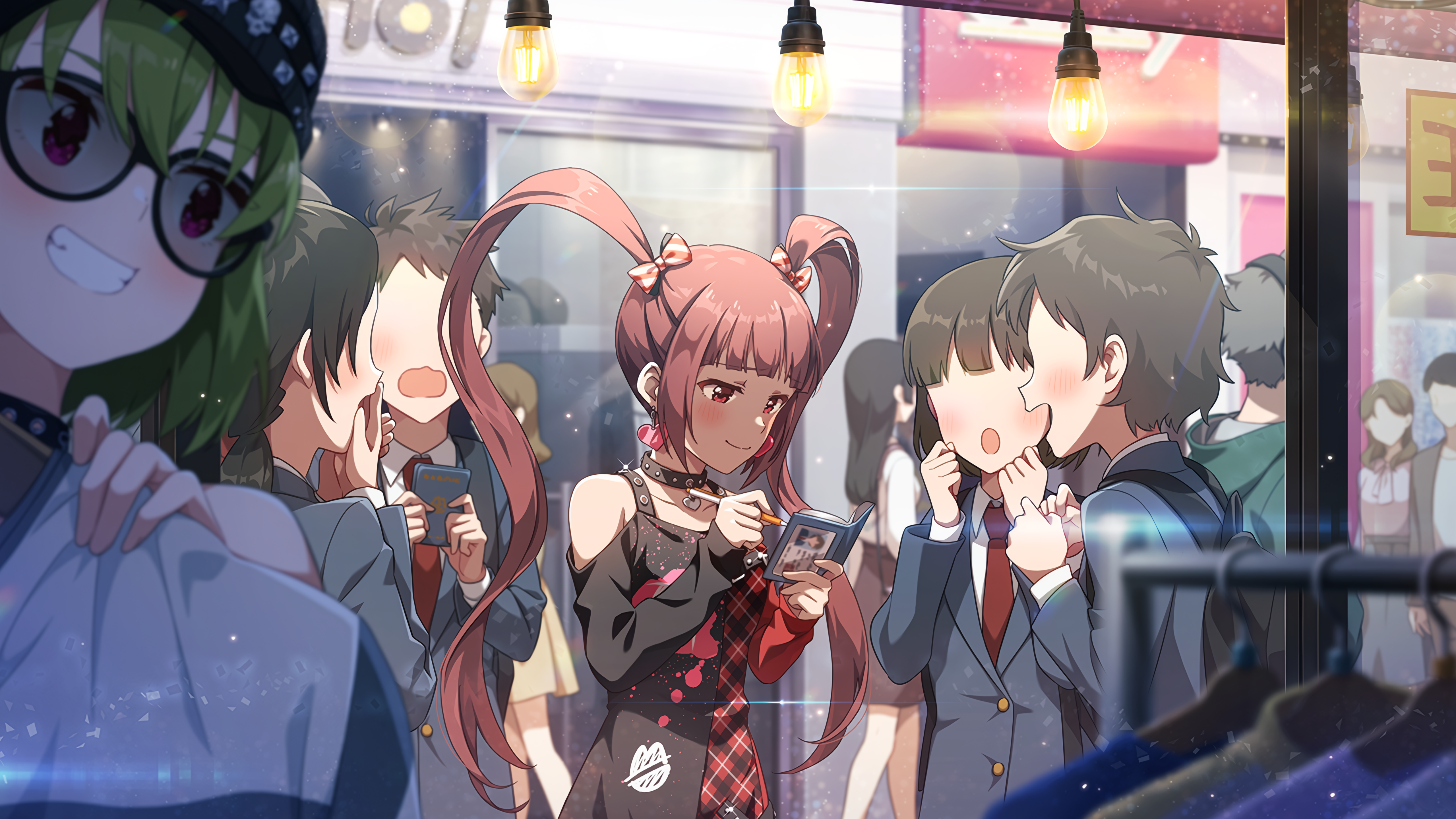 フレーバーテキスト ムフフ、大成功です! ありさたちのこと、本物のマネキンだと思ってるみたいですね。おや……? 今、目が合ってしまいました。ふふふ、驚きましたか? ありさたち、ただのマネキンじゃないんですよ♪