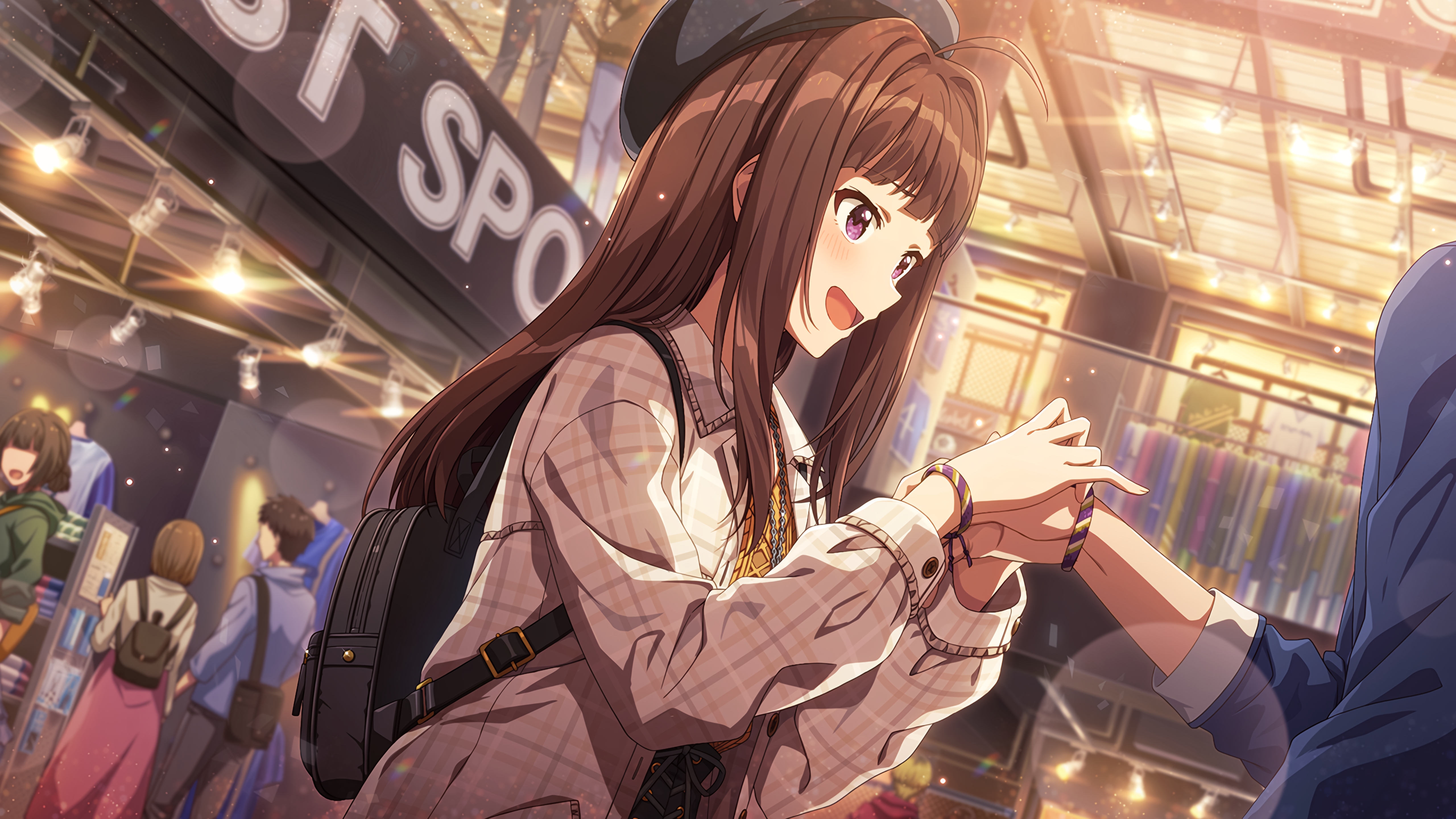 フレーバーテキスト えへへ♪ アニキのチームのミサンガ、買っちゃいました! チームも勝って、アニキもゴール決めて……今日の記念に!(プロデューサー名)さんの分もあるんで着けてあげますね。……なんや緊張するな。