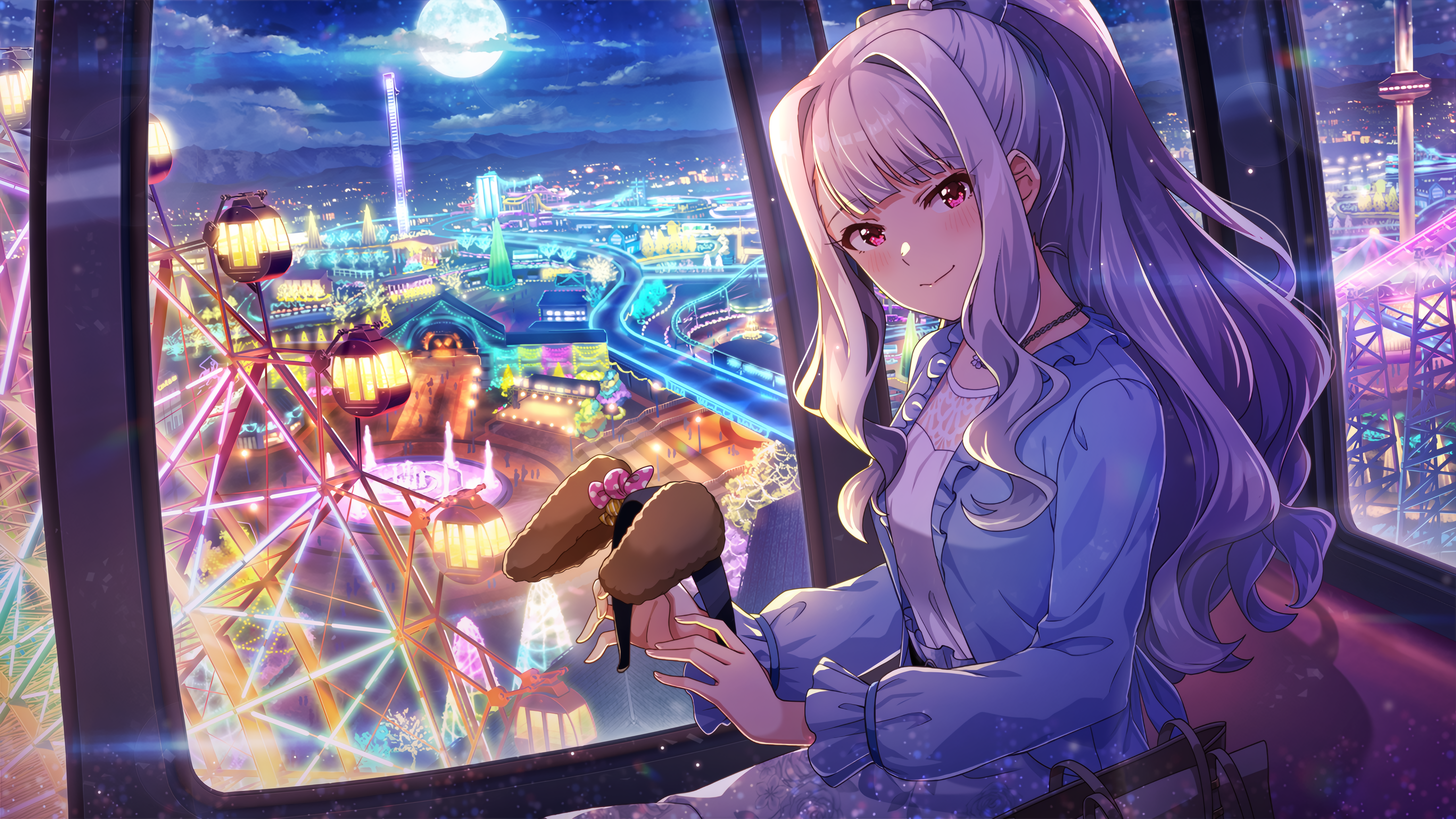 フレーバーテキスト 良い眺めですね。このままあなた様と共に、月まで飛んでいけそうな気すらします。夢のような時間も、地上に戻ってしまえば終わってしまうのですね……。あなた様、またここへ、連れてきてくださいますか?