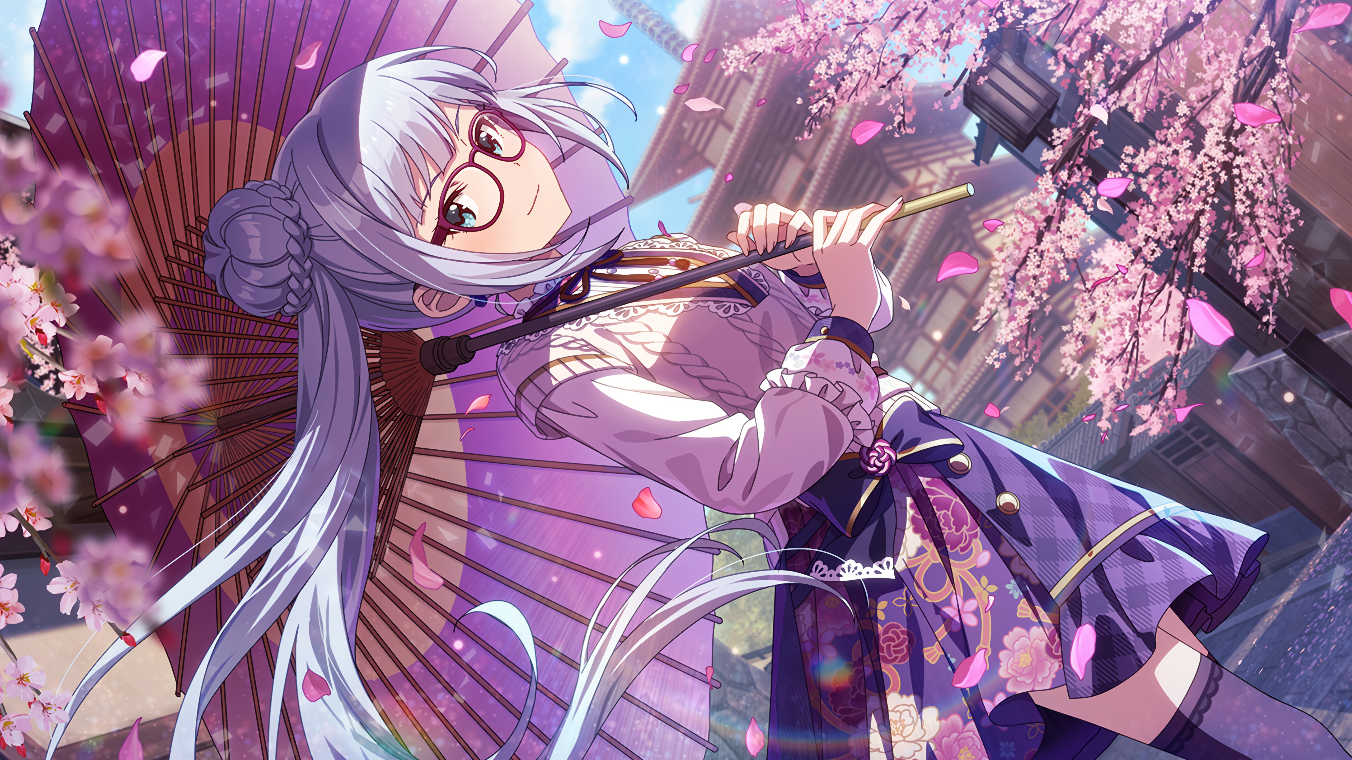 フレーバーテキスト わあ~。古都を彩る桜吹雪……。春の京都は、また違った趣きがありますね。(プロデューサー名)、肩に花びらが。……景色に夢中で気づかなかったと。ふふ。この美しさの前では、仕方ありませんね。