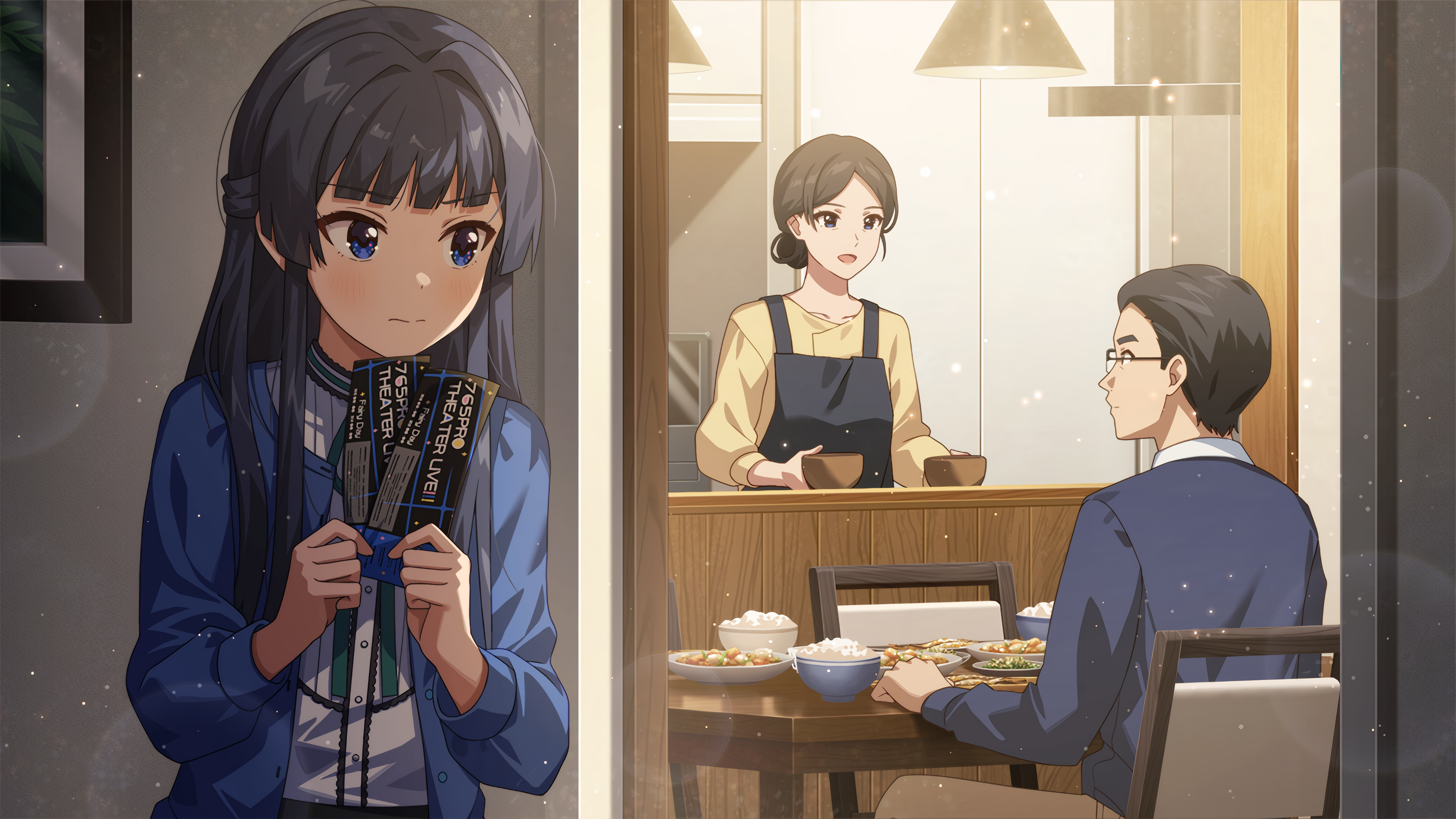 フレーバーテキスト あとは、このチケットを渡せば……。アイドルになって、少しずつ経験も積んできたし、レッスンだって頑張ってる。憧れてただけの、あの頃とは違う……。今ならきっと……来て、くれるよね?