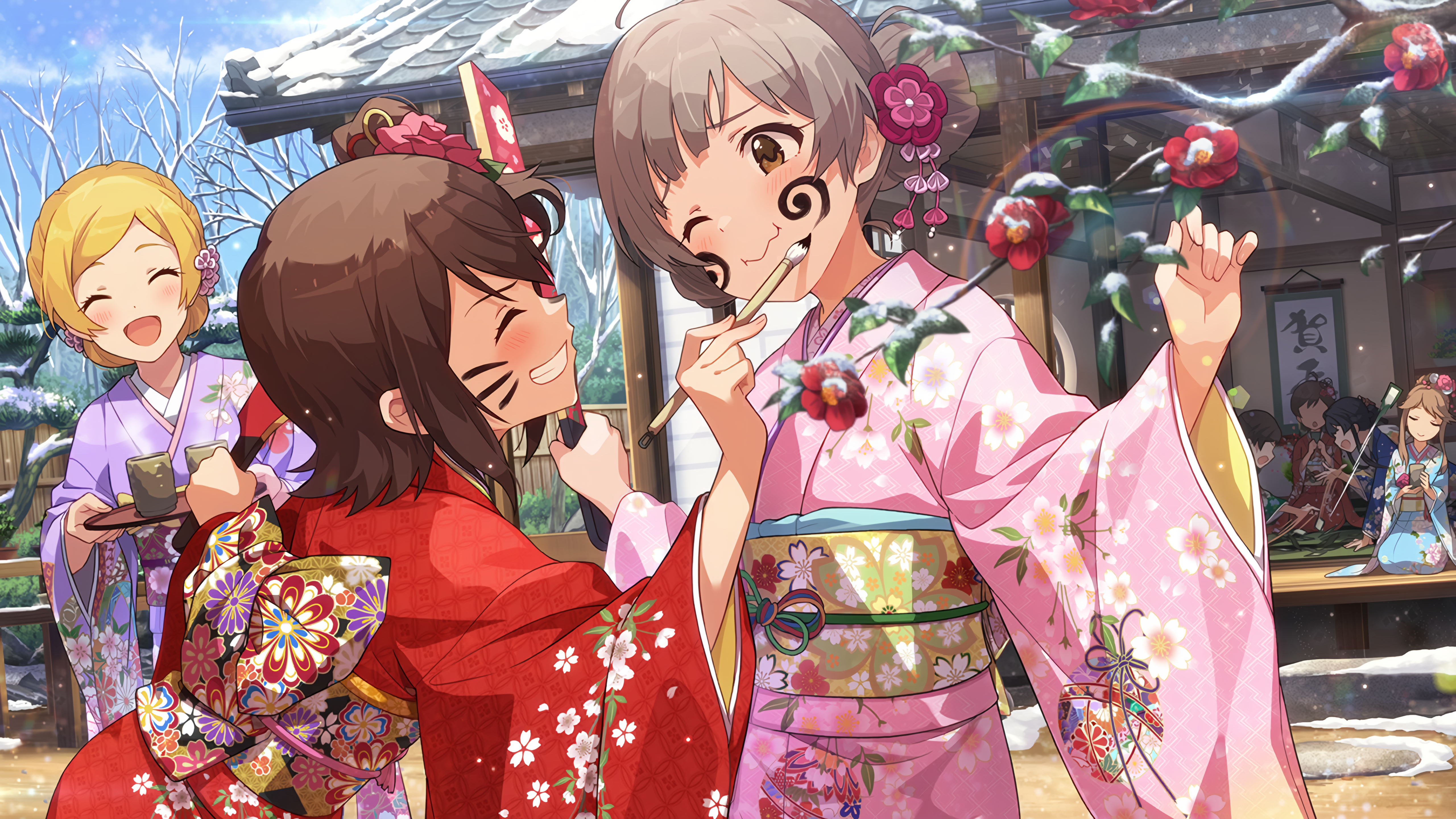 フレーバーテキスト ぷっ……あはははっ、くすぐったいです!あっ、エミリーちゃん見てください、こんな顔になっちゃいました、えへへ♪でも、これで同点ですよね?次は負けませんよ、未来さんっ!