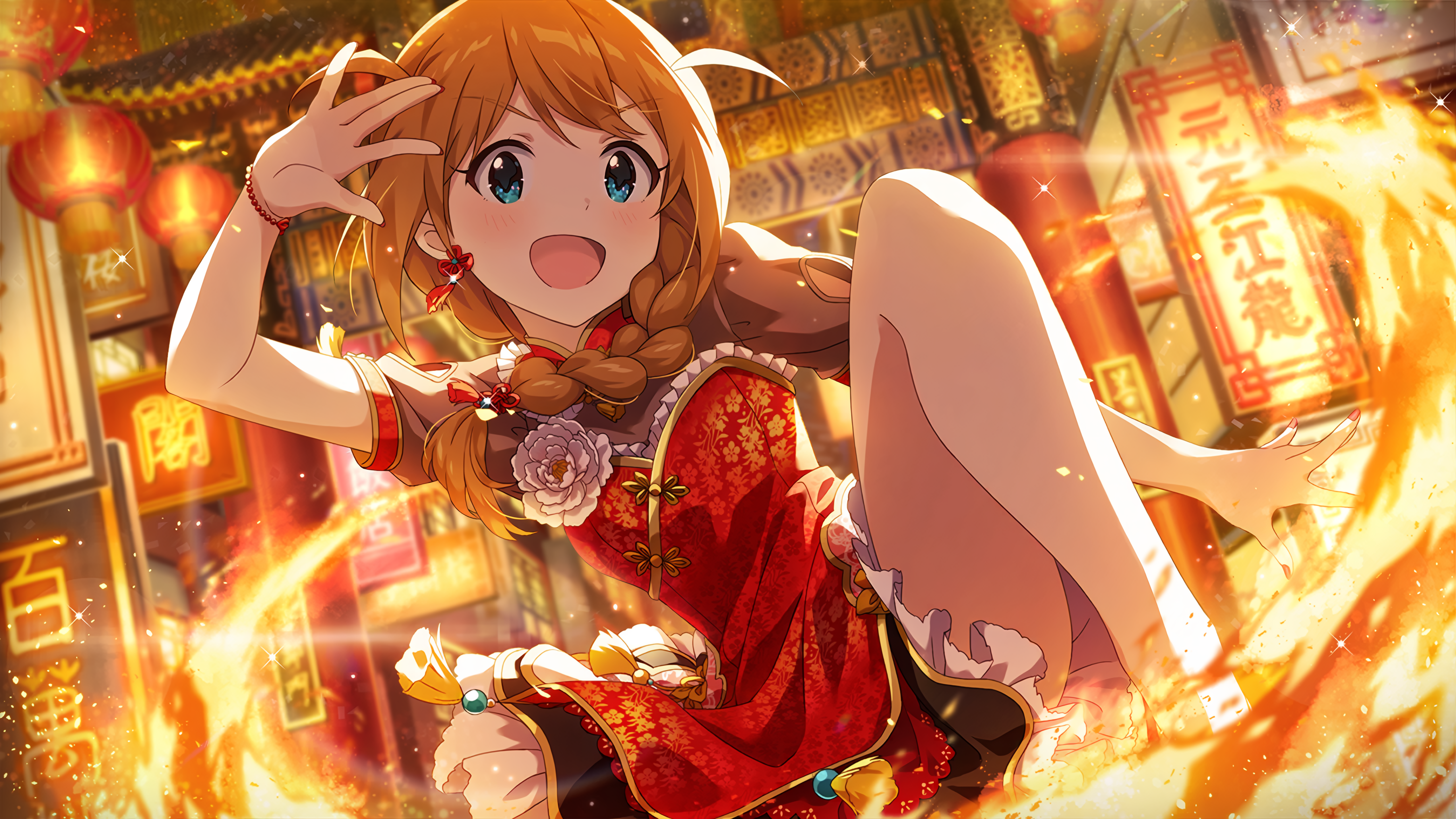 フレーバーテキスト たぁ! えい! ほわちゃー!!……ウフフ、どう?牌さばきだけじゃなく、足さばきもなかなかのものでしょ? この調子で、グラビアでもみんなをノックアウトよ!