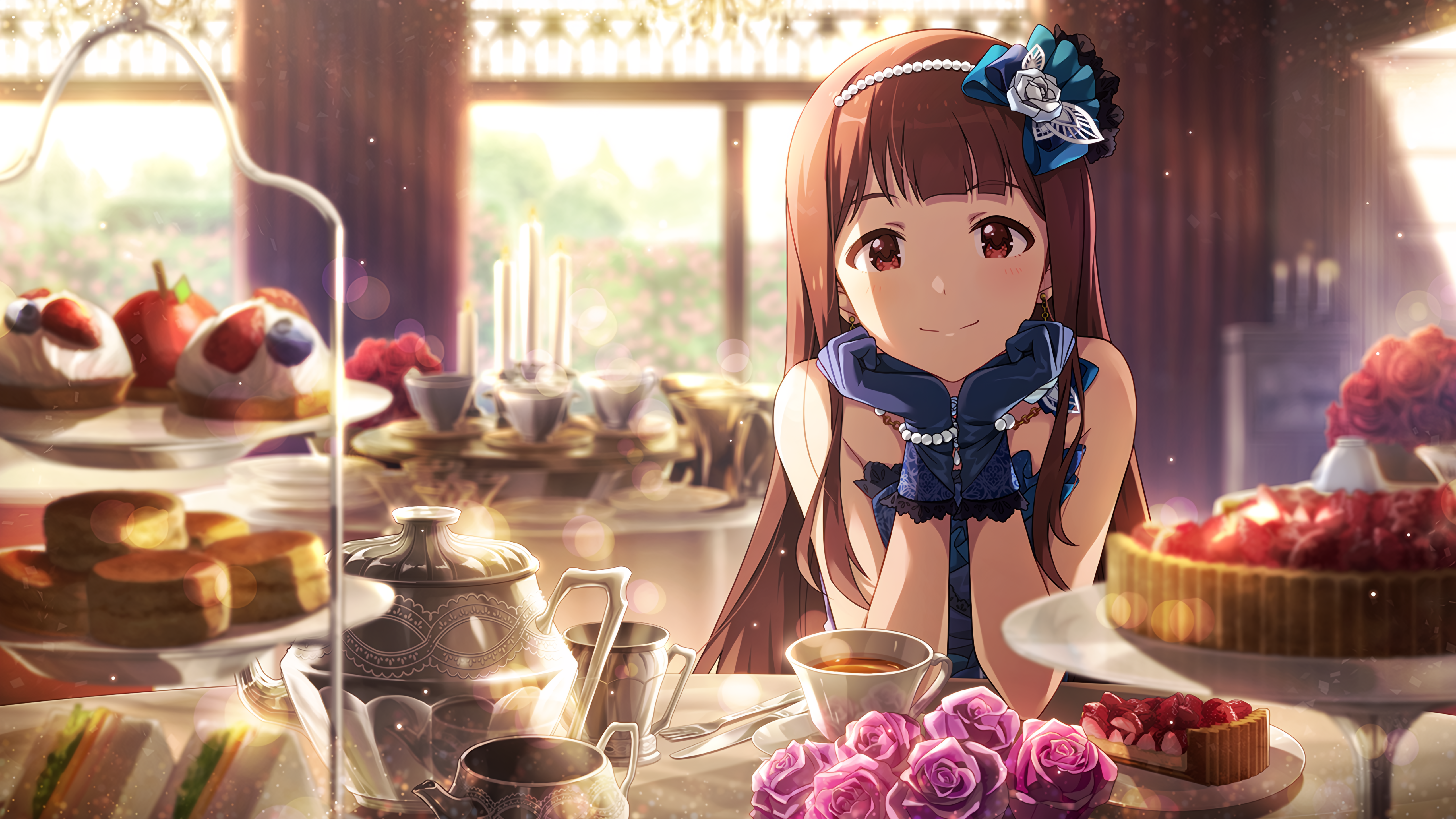 青く優雅なドレスで微笑みかける少女は、まるで映画のヒロインのよう。ティーパーティに相応しいとっておきの時間を、貴方に…。